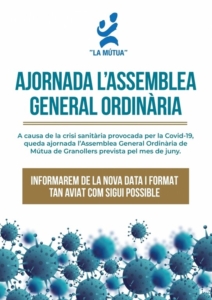 A causa de la crisi sanitària provocada per la Covid-19, queda ajornada l’Assemblea General Ordinària de Mútua de Granollers prevista pel mes de juny.
